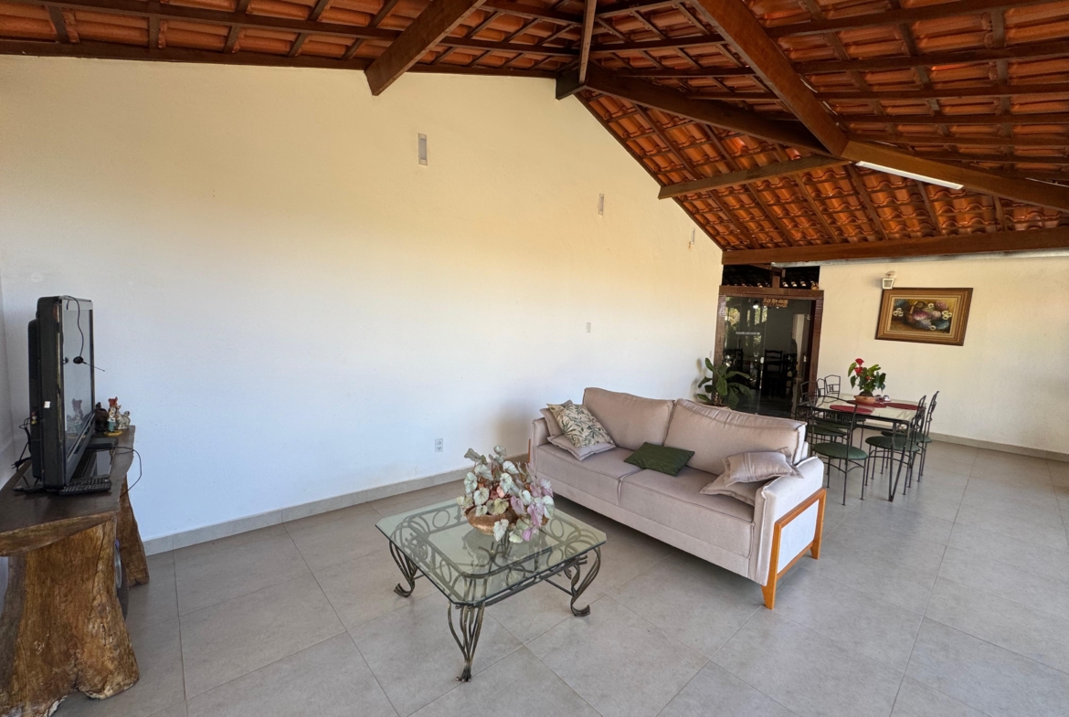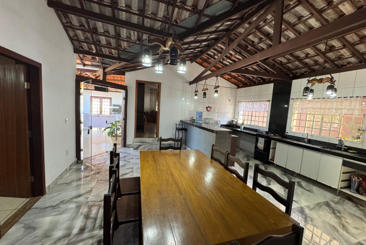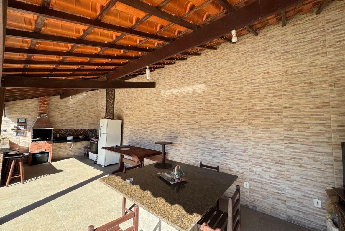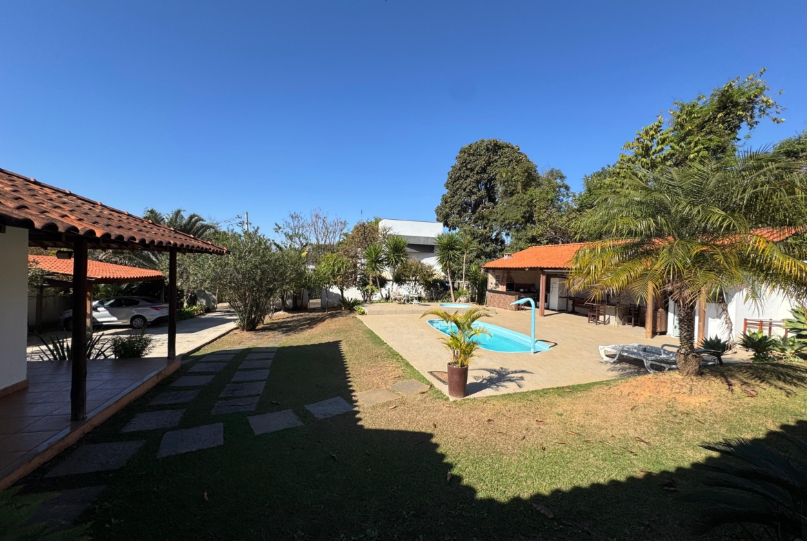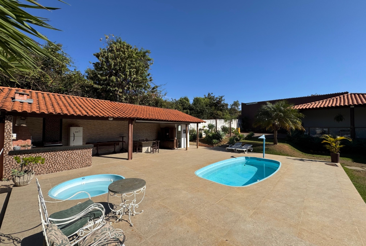 A residência conta com três suítes espaçosas, piscina adulta e infantil com aquecimento a gás, área gourmet com churrasqueira e um pomar cuidadosamente mantido. Os ambientes foram projetados para oferecer bem-estar e integração harmoniosa entre áreas internas e externas.